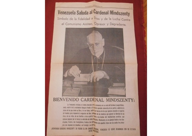 Mindszenty József bíborost élete utolsó útja 1975 áprilisában Venezuelába vezette, ahol tizenegy napig tartózkodott és egyházi rangjához méltó fogadtatásban volt része. A legnagyobb tisztelettel és elismeréssel fogadta őt az akkori venezuelai elnök, Perez Carlos Andrés, valamint látogatást tettek nála lakosztályán Dr. Caldera Rafael, Venezuela korábbi elnöke, José Humberto Quintero Parra bíboros, Caracas érseke és Venezuela prímása, továbbá a politikai és diplomáciai élet még sok fontos személyisége.