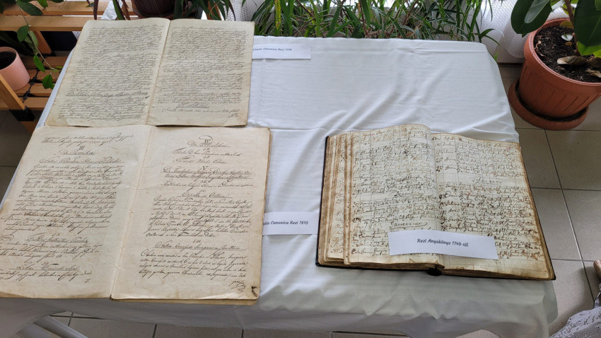 Ezt követően Cséry Gergő pacsai plébános mutatta be röviden a kiállításon látható liturgikus tárgyakat, eszközöket, egyedi kézműves munkával készült miseruhákat. Kiss László hévízi esperes-plébános pedig a főként a rezi plébánia levéltárából származó, több száz esztendős dokumentumokról beszélt.