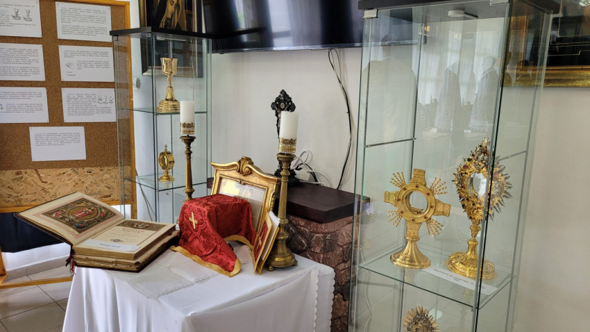 A búcsúi ünnepen megnyílt a liturgikus tárgyak kiállítása is az otthon közösségi termében.