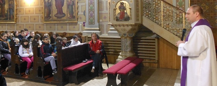 A zarándoklat végén a gyerekek a Szent János apostolról és evangélistáról elnevezett (Hildegárda) templomban szentmisén vettek részt, melyet az őket kísérő Oláh Zsolt, a nagybányai Szentháromság-plébánia segédlelkésze mutatott be. A szentbeszédet Vass Loránd ifjúsági és ministránslelkész, a székesegyház segédlelkésze mondta. Buzdította a fiatalokat, hogy tartsanak ki hivatásukban.