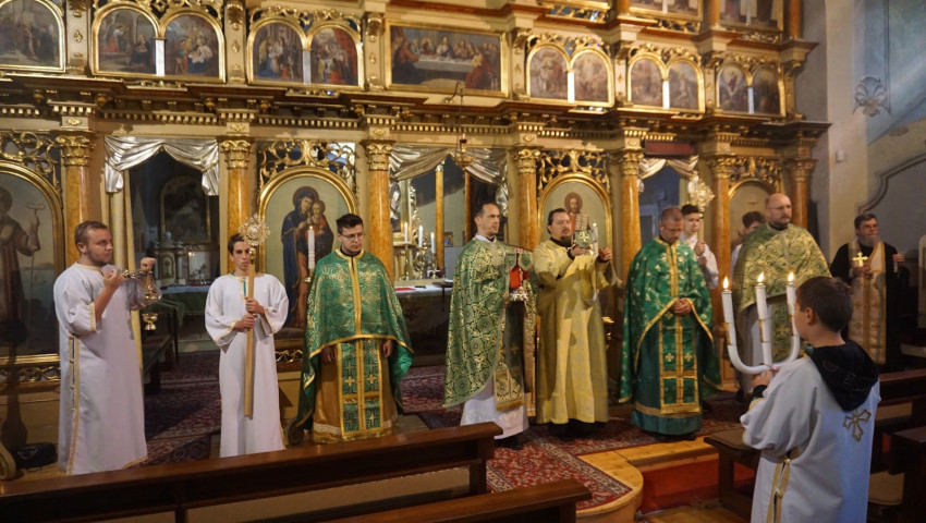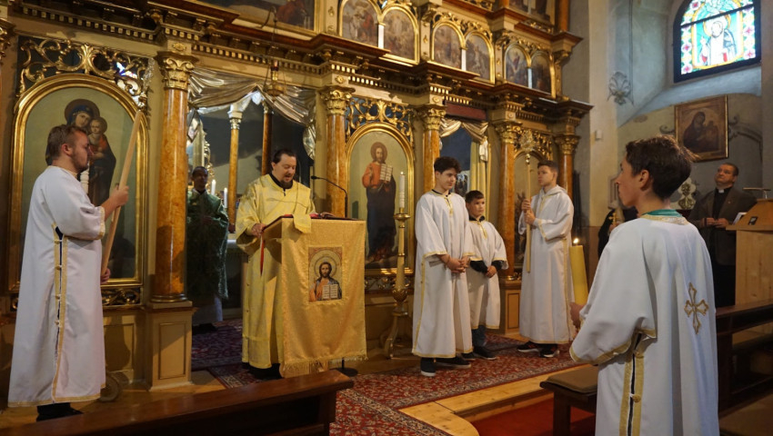 A nap elején néhányan rögtön szolgálatba is álltak a Szent Liturgián, amelyen több ünnep is egybekapcsolódott. Ezen a napon, május 25-én tartották pünkösd ünnepének zárását, és egyúttal Mindenszentek vasárnapjára készültek, valamint a Miskolci Egyházmegye védőszentje, Keresztelő Szent János próféta fejereklyéjének emlékét tisztelték.
