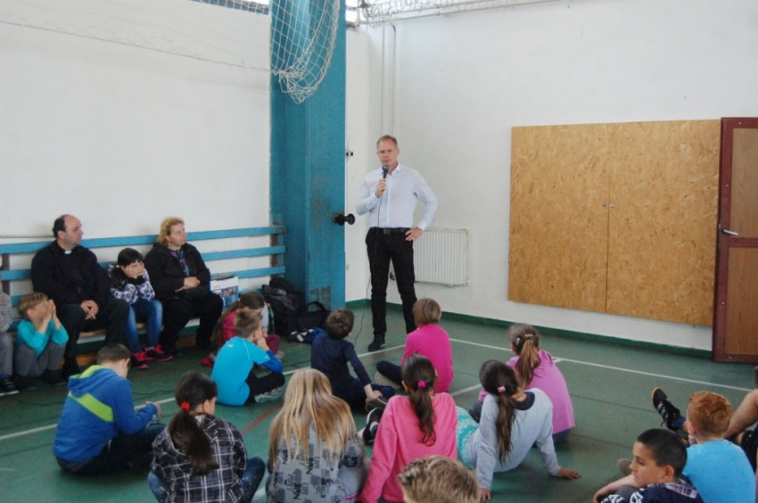 Délután a templom közelében lévő Pécsi utcai általános iskolában folytatódott a program, ahol Borhi Zsombor, Kaposvár alpolgármestere, világbajnok kenus beszélt a sport szeretetéről.