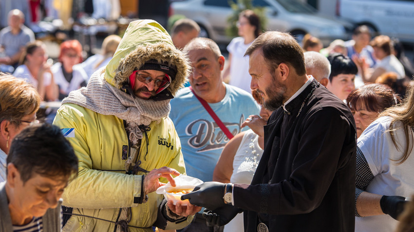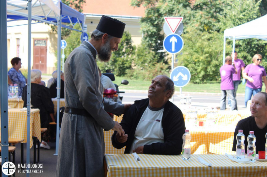 Kétszáz adag étel és terített asztalok fogadták a vendégeket. Az ebédhez Kocsis Fülöp metropolita atya is csatlakozott, aki úgy véli, a közös étkezés az embert még közelebb viszi az Istenhez.