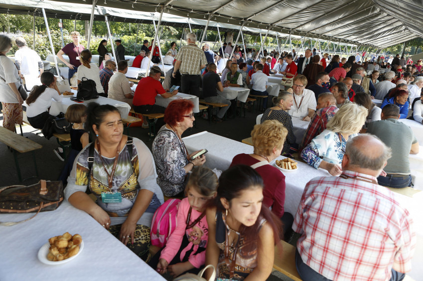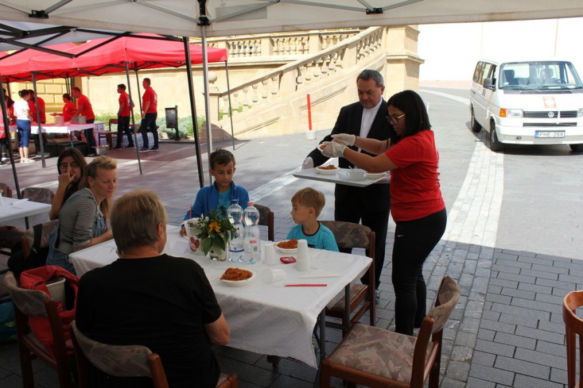Csaknem 300 rászorulót vendégelt meg a Győri Egyházmegyei Karitász szeptember 4-én, szombaton délben a budapesti Nemzetközi Eucharisztikus Kongresszus nulladik napján. Az egyházmegyében három helyszínen, Győrben, Mosonmagyaróváron és Sopronban hangzott fel harangszókor az asztali áldás.