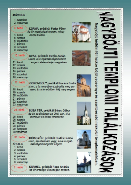 Templomok sorrendje megtekinthető a Miskolci Apostoli Exarchátus honlapján.
