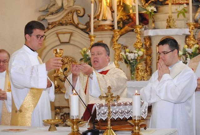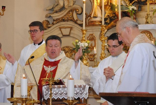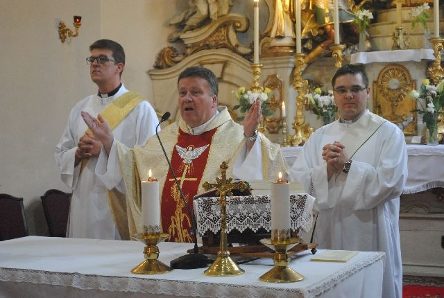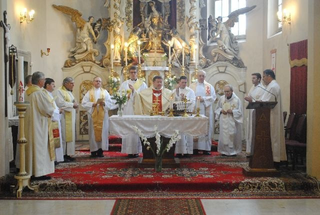 A szentmise elején a házigazda, Mikolai Vince főesperes, diósgyőri plébános köszöntötte a vendégeket. Arra is felhívta a figyelmet, hogy ezen a napon mutatja be vasmiséjét Egerben Katona István segédpüspök, ezért kérte a híveket, hogy a szentmisén ne csak a szentelendőkért, ne csak a papi hivatásokért, hanem Katona Istvánért is imádkozzanak.
