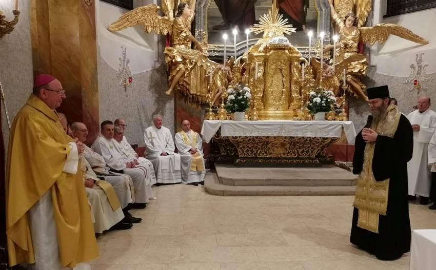 A Rómában tartózkodó Ternyák Csaba egri érsek köszöntését és jókívánságait a templom plébánosa, Juhász Ferenc tolmácsolta az ezüstmisésnek.