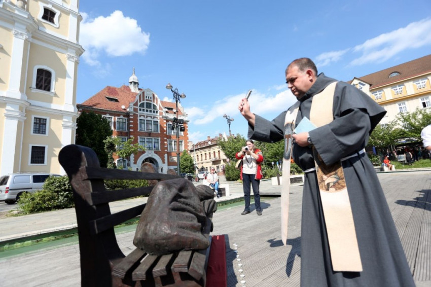 Kalna Zsolt minorita szerzetes, tartományfőnök megáldotta a hajléktalan Jézus szobrát, majd a közös imádságot Gecse Attila református lelkész vezette. Az ünnepségen a Fényi Gyula Jezsuita Gimnázium és Kollégium kamarakórusa énekelt.