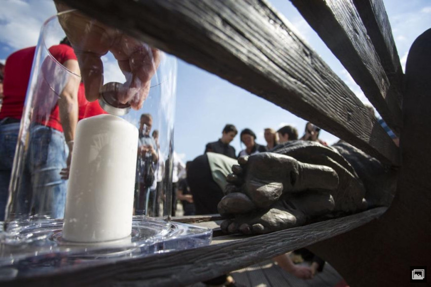 „Ez a szobor nagyon sok gondolatot ébreszt és nagyon sok kérdést feltesz. Ezért nem is csoda, hogy Budapesten nem találtuk meg a végső helyét. Nem szereti senki sokáig nézni” – mondta Vecsei Miklós, a szeretetszolgálat alelnöke, és hozzátette, a fiatalok az egyetemi felvételi kérdések mellett azon is gondolkodjanak el, képesek-e meglátni a kiszolgáltatott emberekben Jézus arcát, és tudnak-e rájuk úgy tekinteni, ahogy a Megváltó tette. „Azt kívánom magunknak, hogy amikor egyszer mindent végiggondoltunk, legyen bátorságunk odaheveredni mellé, odaheveredni melléd” – idézte Lackfi János versét.