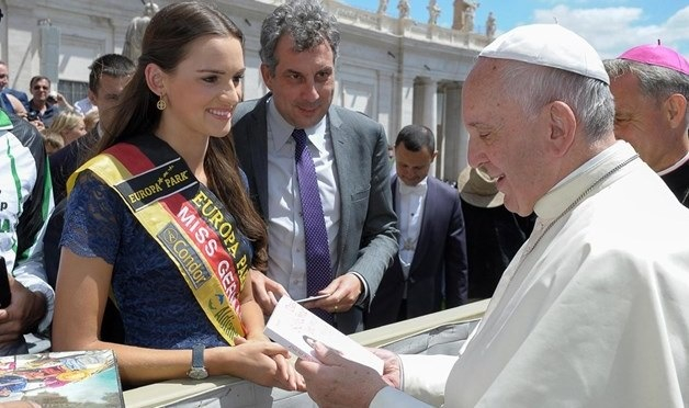 Lena Bröder szerint ritkán fordul elő, hogy a diákok hitoktatójukat irigyelhetik. A Miss Germany címet februárban elnyert Lena szerint ez most, június 15-én Ferenc pápa audienciáját követően megtörténhetett. A szépségkirálynő az audiencia során átadhatta a Szentatyának a június végén boltokba kerülő életrajzi könyvét, amely A szépség bennem – hittel a sikerhez címmel jelenik meg. A Vatikáni Rádiónak adott interjúban Lena Bröder arról beszélt, egy álom vált számára valósággá, amikor megrázhatta Ferenc pápa kezét: „Minden úgy történt, ahogy elképzeltem. Tudtam, hogy néhány pillanat erejéig áll meg előttem a Szentatya, mégis át tudtam adni neki a könyvem.”