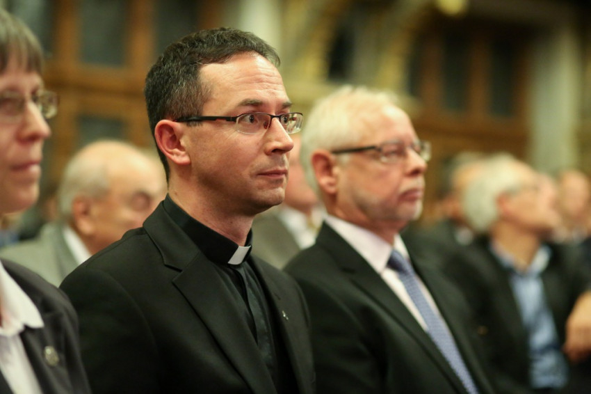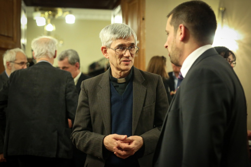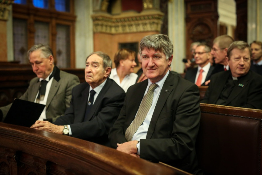 Jelenits István kitért a szocializmus évtizedeire is, amikor a rend számára az volt a kérdés, „lehet-e összekötött lábakkal táncolni”, tudják-e hitelesen képviselni a szolgálatukat meghatározó „Hitre, tudásra” alapelvet. És meg tudják-e találni a módját, hogy keresztény értelmiséget neveljenek.