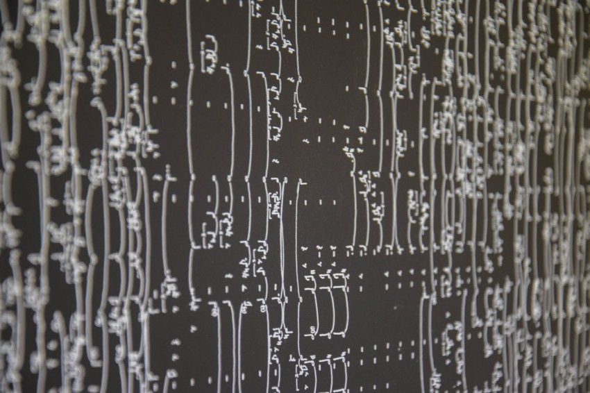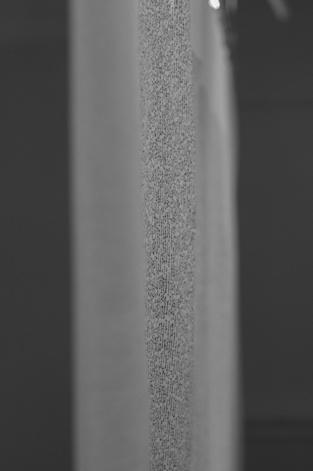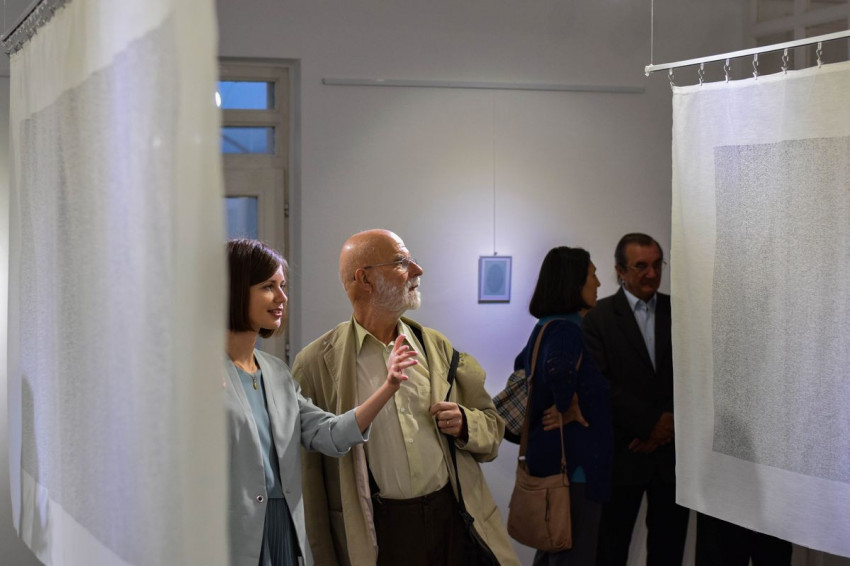 A kiállított művek lelki történések, lélekben őrzött szövegek és képek auditív és vizuális leképezései. A tárlaton látható, finom textilekre szitanyomással rögzített sorok középkori kódexmásolók aprólékos munkáját idézik emlékezetünkbe – hívta fel a figyelmet Beke László. Az alkotó arra vállalkozott, hogy Avilai Szent Teréz 1577-ben írt misztikus művét, A belső várkastélyt spanyol nyelven kézzel lemásolja, betűről betűre engedve magához közel a kármelita rend megújítójának gondolatait. Ez a gesztus ellensúlyozza napjaink szövegfogyasztási szokásait: már a könyvesboltig vagy a könyvtárig sem kell elmennünk egy kiadványért, hiszen az internet világában egy kattintással a birtokunkban lehet az áhított szöveg, gyorsan átfutjuk, és már jöhet is a következő. Ezzel szemben egy szöveg alázatos, kézzel történő másolása rendkívül nagy figyelmet igényel, a mindennapi elfoglaltságok mellett nem sokaknak adatik meg, hogy ilyen intenzíven koncentrálhassanak egy szövegre. A szövet-triptichonból két egymás felé fordított templomszentélyre kapunk kilátást, mindezt Avilai Szent Teréz szavaiból formázva.