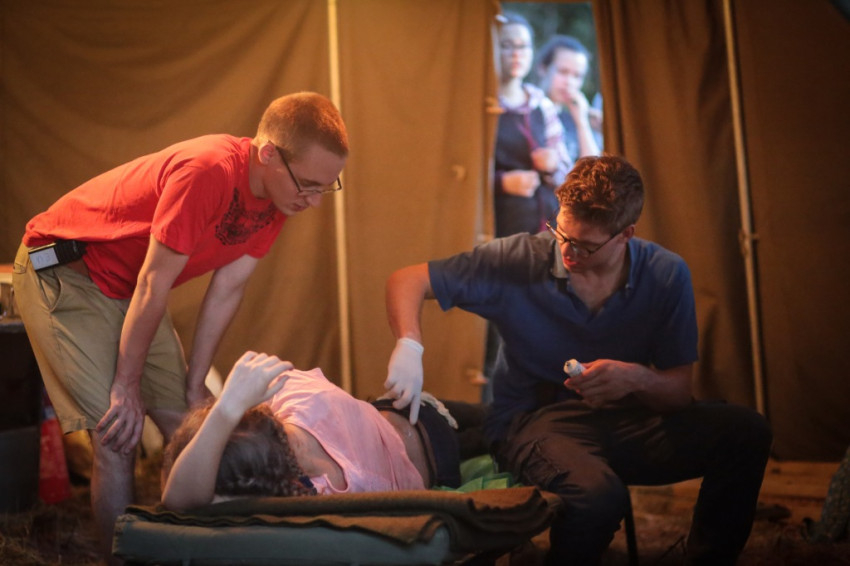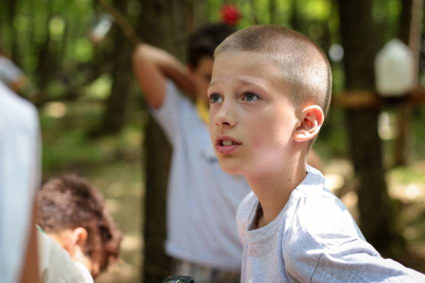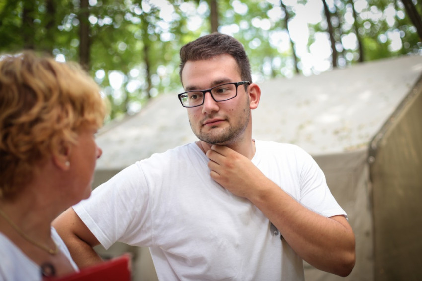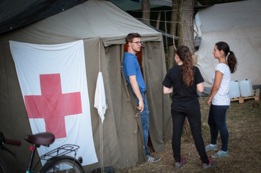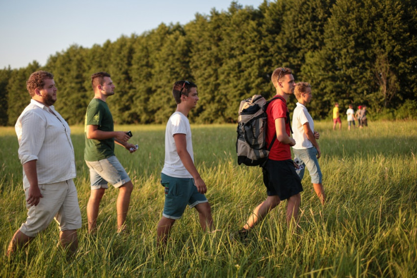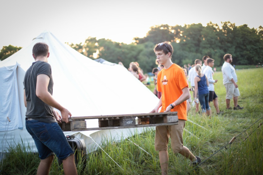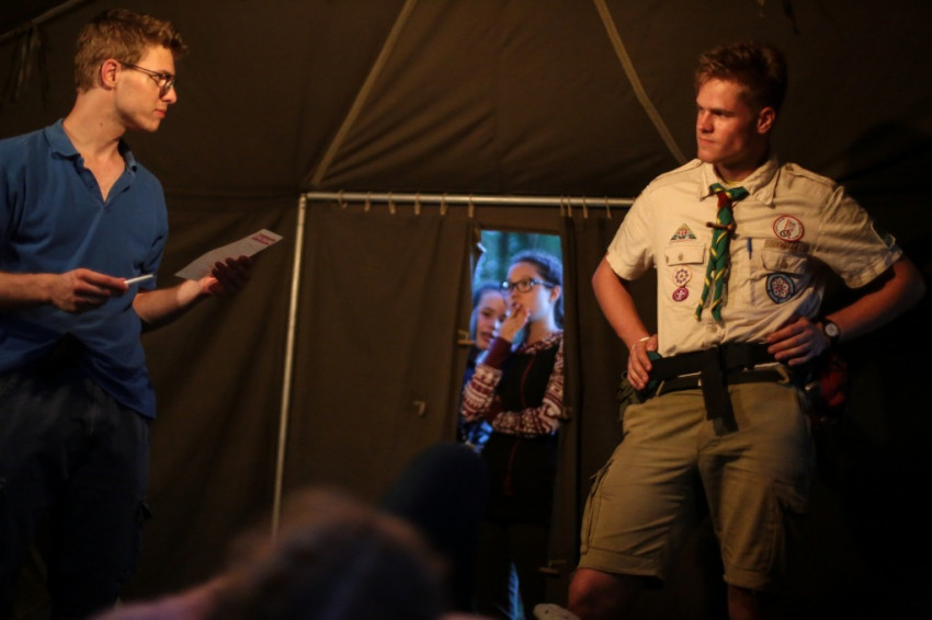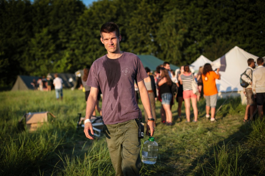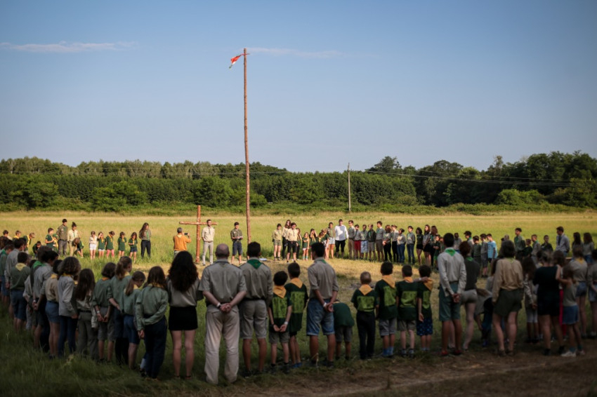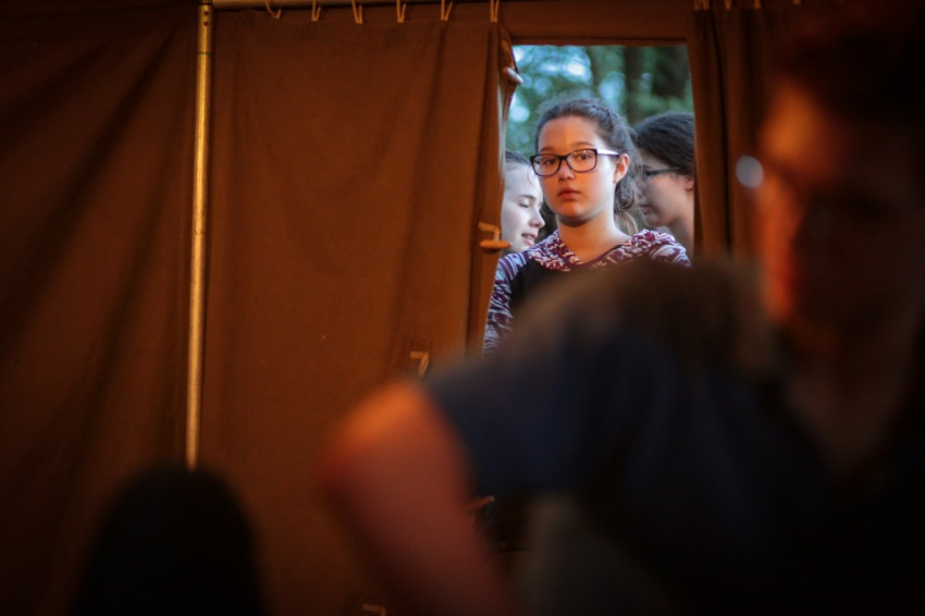 A hatos altáborba igyekszünk, ahova baráti szálak kötnek. A budakalászi Szent István Cserkészcsapat és a békásmegyeri Szent József Cserkészcsapat a vendéglátónk. Miután felverjük a sátrunkat, Wettstein András, a budakalászi csapat alapítója, Lontai Levente táborparancsnok a békásiak részéről pedig Boros Gábor vezet körbe a táborban. A bozóttól megtisztított ösvényeken ismerkedünk a cserkészek világával. Kijövünk a természetbe és mindent nekünk kell létrehoznunk, hogy életkereteinket megteremtsük. Az erdő nemcsak a vaddisznóknak meg a szarvasoknak ad otthont, mi is képesek vagyunk benne létezni – mondja Lontai Levente, akit már gyerekként ez fogott meg a cserkészetben.