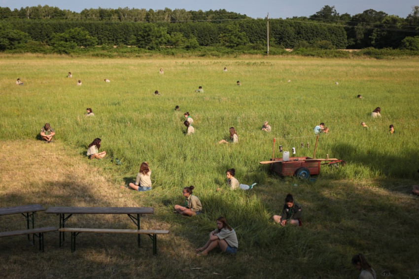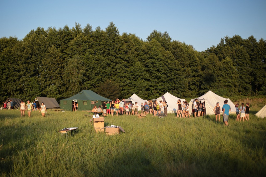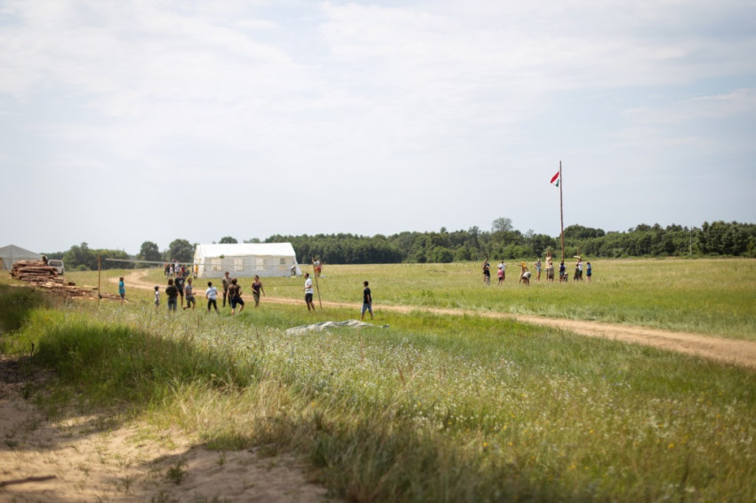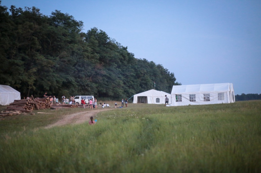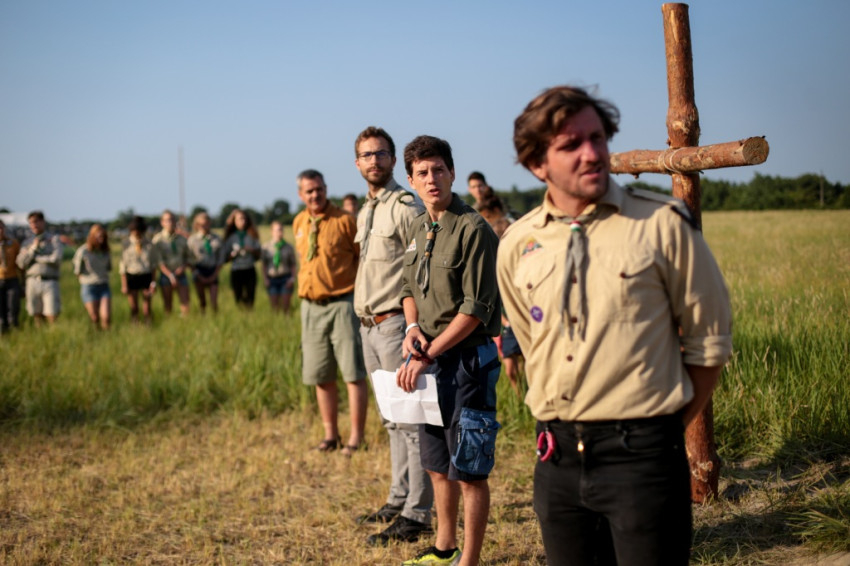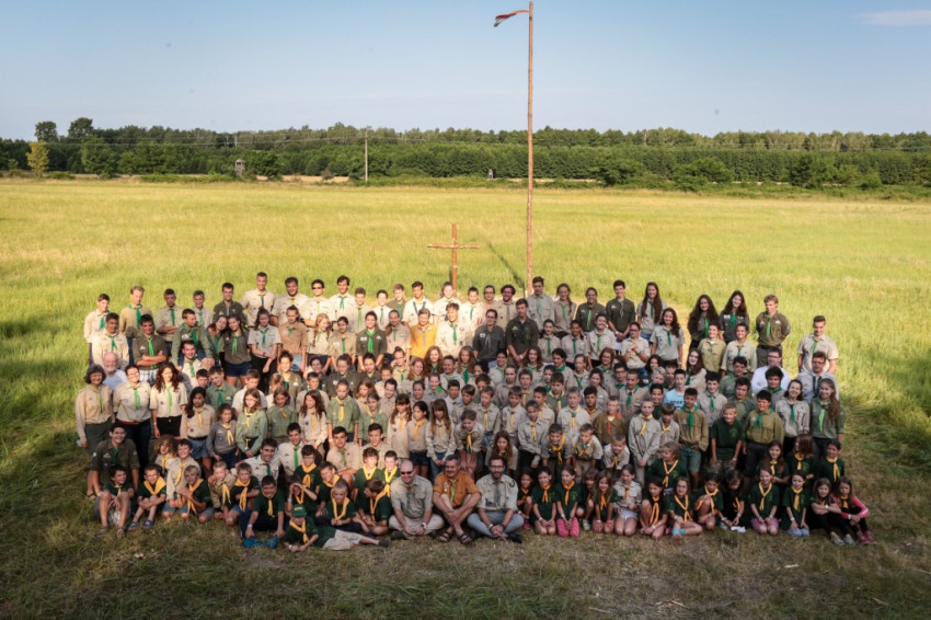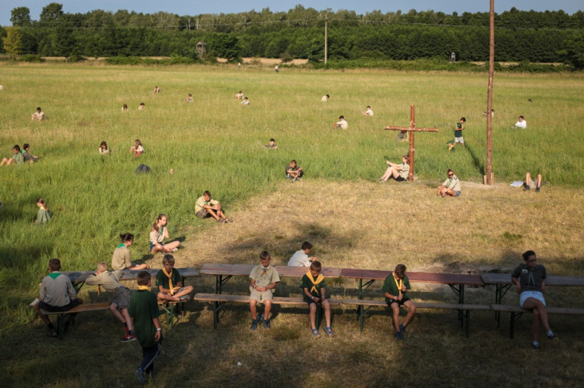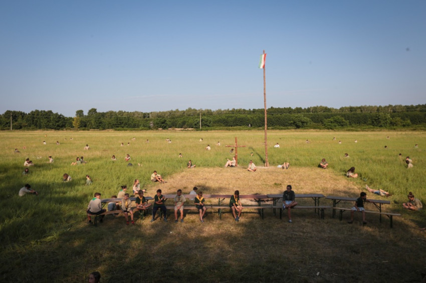 Két oldalról két erdősáv néz egymással szembe. Hol az egyik, hol a másik oldalról integetnek gyerekek. A fák között kapuszerű építmények, előttük sportpályányi méretben lekaszálva a fű, rajta zászlórúd, mellette kereszt. Ezek az altáborok, a mintegy 30 cserkészcsapatot ugyanis 11 altáborban helyezték el – tájékoztat Metz Márk, miközben a nagy távolság miatt autóval visz körbe a területen. Nem volt könnyű olyan helyszínt találni, ahol ennyi csapat önálló tábort tud kialakítani, alakulótérrel, tábortűzrakó hellyel, tábori konyhával, cserkészenyelven GH-val. Ezért jöttünk el ide a világ végére – mondja.