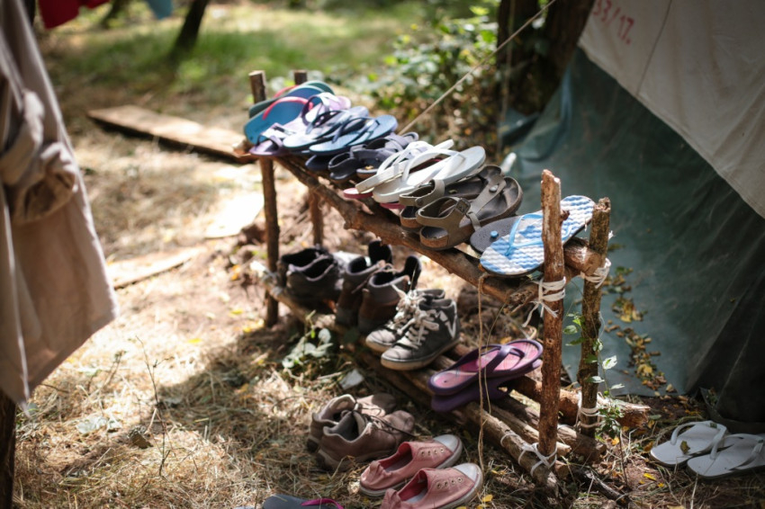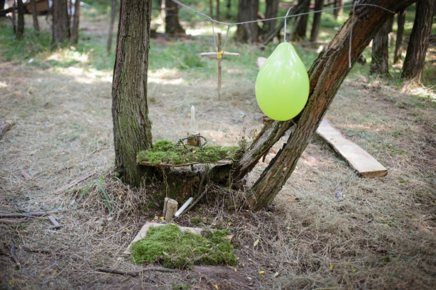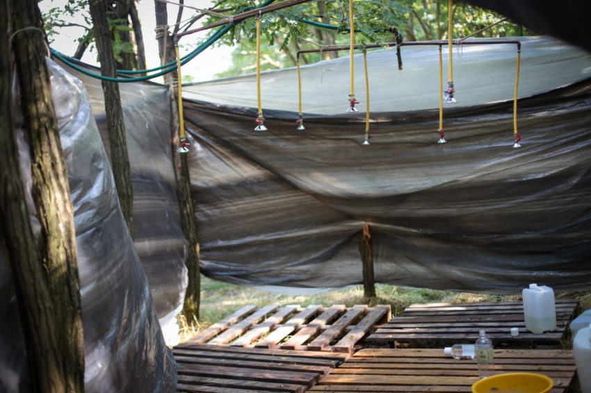 Varázslatos birodalmat alakítottak ki a zegzugos dzsungelben: az őrsök sátrai körül köcsögfa, cipőtartó polc, fogkefetartó, a cserkészingeknek készített vállfák. Idén az őrsök egy kis oltárt is készítettek. Van hinta, magasles, mászóka is, étkező, konyha, mosogató és persze latrina, mindez saját alkotás. A faanyagot az építéshez a táborvezetés bérli. Ennyi ember nem tud hullott fából értelmesen építkezni. A gömbfákat, széldeszkákat biztosítják a csapatoknak. A felhasználás szabálya, hogy egész méterig darabolhatják fel azokat. Ezeket az erdészet visszaveszi a tábor végén. Mindig a hely adottságai alapján építjük fel a táborunkat. Itt most viszonylag kicsi a tér, ezért szoros közelségbe kerültek egymással az őrsök – mondja Wettstein András.