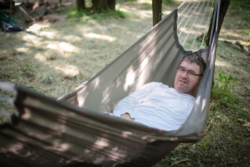 A Star Wars-hoz nem volt könnyű lelki témát kapcsolni – mondja Kálmán József, budakalászi plébános, aki néhány napra kifeszítette két fa közé a függőágyát, hogy a cserkészekkel táborozzon. „Az erő legyen veletek” jelmondat a lelki programjaink vezérfonala. A lelki erőforrásainkra fókuszálunk a tábor során.