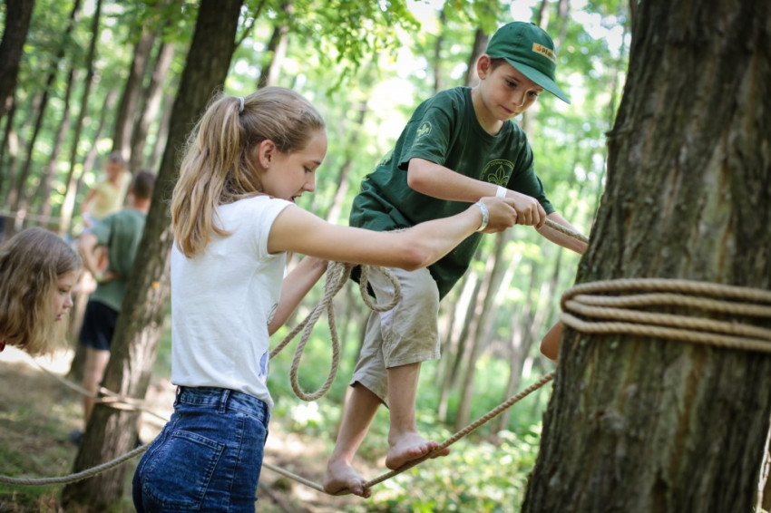 A másik fő cél a közösségépítés: a közösen végzett tevékenységek, a rengeteg játék óriási összekovácsoló erő. A Mosómedve őrs tagjai, Franci, Zsófi és Lilla is a közösséget dicsérik. Együtt kelünk, együtt fekszünk. Jó itt lenni a természetben. Mindent együtt, magunknak csináltunk. Önállóbbak vagyunk, sosem unatkozunk, nem nyomkodjunk a telefont. Szeretünk a táborban – mondják a lányok.