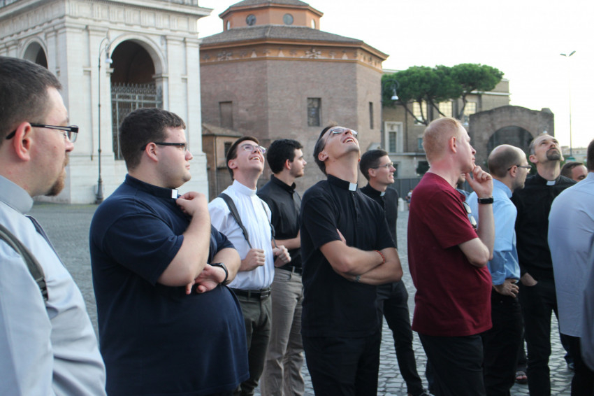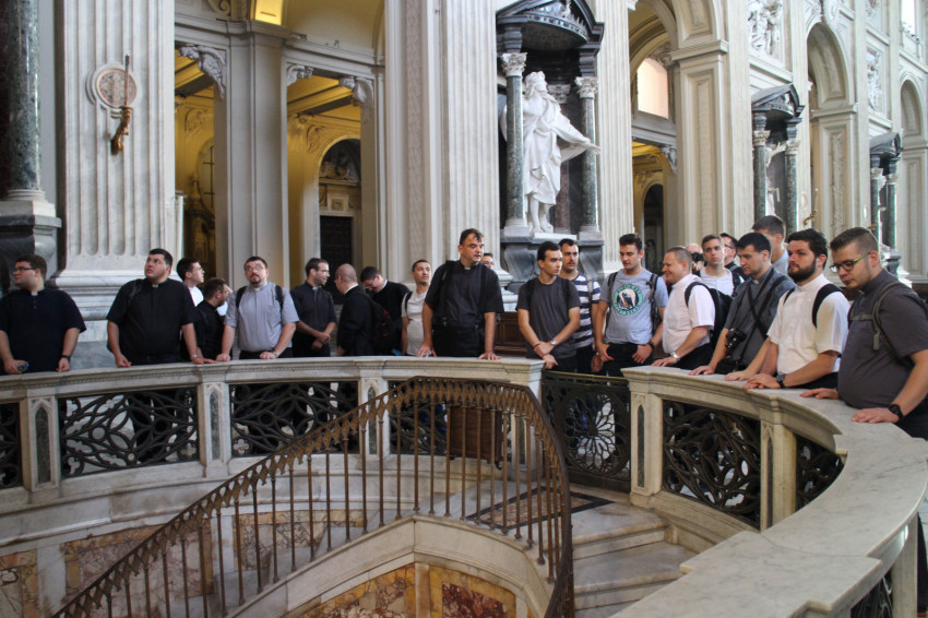 A nyaraláson túl lelki élményt is jelentett a zarándoklat. Mindannyiunk számára az egyik meghatározó esemény a Szent Lépcső végigjárása volt. A hagyomány szerint ezen a Jeruzsálemből Rómába szállított lépcsősoron ment fel Jézus Pilátus elé; így ezt a 28 lépcsőfokot csak térden állva lehet végigjárni. Sokat jelentett, hogy az egész közösség – kispapok és atyák egyaránt – együtt haladt ezen végig térdelve és imádkozva. Hasonlóan mély tapasztalat volt valamennyi közös szentmise, különösen a Szent Péter-bazilika magyar kápolnájában végzett liturgia, ahol Mária neve napján megújítottuk az esztergomi szeminárium felajánlását a Szűzanyának. Ezen alkalmakra csatlakozott hozzánk néhány Rómában tartózkodó magyar pap is.