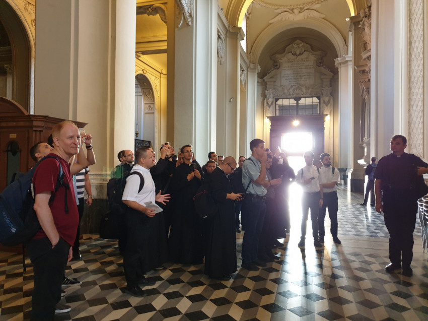 Rengeteg tésztát kóstoltunk meg az étkezések során, kipróbáltuk a jellegzetes olasz bárokat, ahol reggelente kávé és cornetto, délután pedig pizzaszeletek vártak minket. Közösen végigjártuk a négy fő bazilikát, és látogatást tettünk a Pápai Magyar Intézetben is. A napok jelentős részét szabad beosztás szerint tölthettük, így mindenki saját tempójának és érdeklődésének megfelelően tudta megnézni a várost. Jártunk például a Pantheonban, a katakombákban, a Colosseumnál, a tengerparton; valamint betértünk hangulatos olasz éttermekbe és kávézókba. Rómában sok helyen kapható papi ruházat és mindenféle liturgikus eszköz, így mindenki vásárolhatott kedvére.