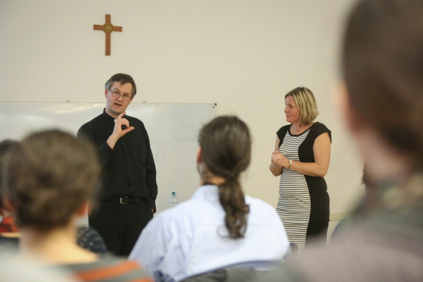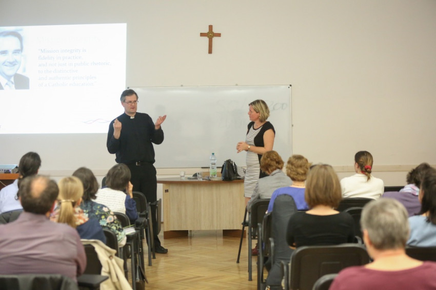 Küldetésünk alapkérdését – Hogyan tudunk segíteni leginkább diákjainknak? – újra és újra fel kell tennünk magunknak. Katolikus intézményként az a missziónk, hogy az értékeinket meghatározó evangéliumi történeteket folyamatosan meséljük, közel hozzuk neveltjeinkhez, hogy ezek beleivódjanak gondolkodásukba, s későbbi életükben észrevegyék például, ki az az ember, akinek irgalmas szamaritánus módjára segíteniük kell. Arra kell törekednünk, hogy diákjaink jó emberekké váljanak, ehhez nekünk azt kell közvetítenünk, ami leginkább segít ebben. Mindennek, amit teszünk, az evangéliumi értékekre kell épülnie. Kérdezzük meg naponta magunktól az iskolában: Milyen istenarcot látnak a gyerekek általunk? – hangsúlyozta az előadó.