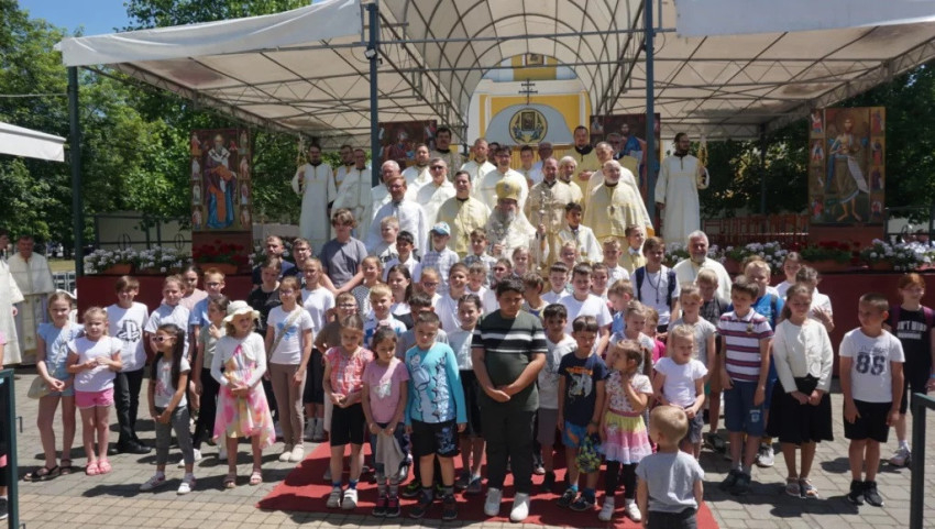 A liturgia végén az idén első szentgyónásuk után az Eucharisztiában először részesülő gyerekeket külön köszöntötték. De nemcsak ők, hanem az összes jelen lévő gyermek apró ajándékot is kapott.