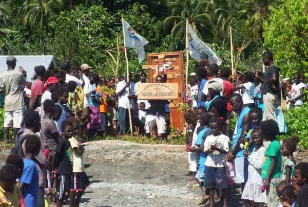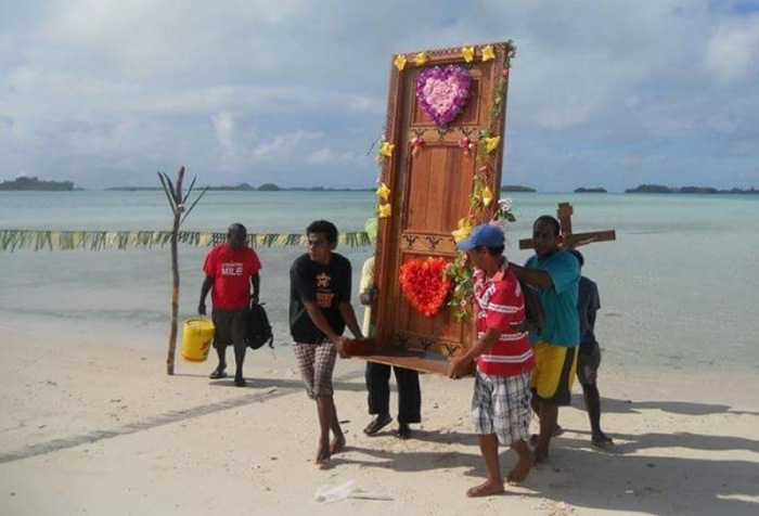 Amikor bejelentette az irgalmasság rendkívüli szentévét Ferenc pápa, azt mondta, hogy szent kaput kell nyitni minden egyházmegyében, „hogy mindenki megtapasztalhassa Isten szeretetét, aki megvigasztal, megbocsát és reményt ad”. A Salamon-szigeteki gizói egyházmegyében nagy nehézséget jelent a plébániák és az egyházmegye központja közötti távolság és az elszigeteltség, ami gyakorlatilag lehetetlenné teszi a falvakban élő emberek számára, hogy eljussanak a székesegyház szent kapujához. Emiatt az egyházmegyében, amelyet Luciano Capelli szalézi püspök vezet, mobil szent kaput állítottak fel.