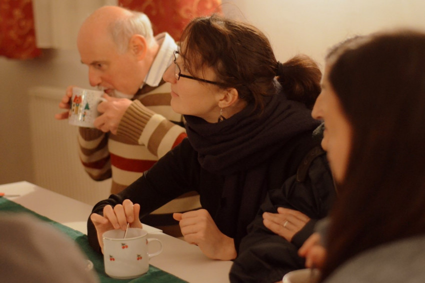 A beszélgetés végén a Vigyázó Miklós közösségi terembe vártak mindenkit teázásra, baráti beszélgetésre.
