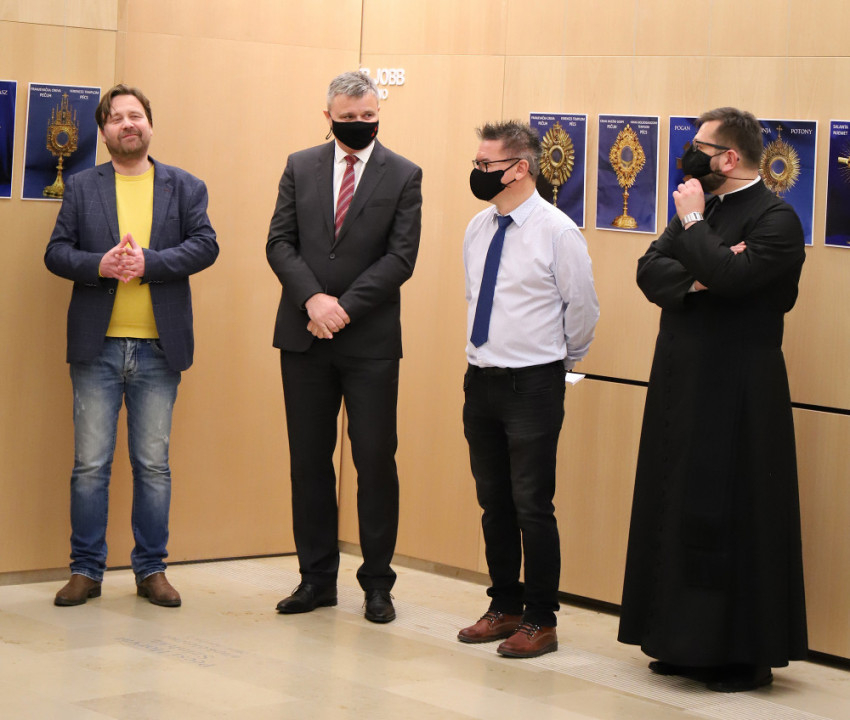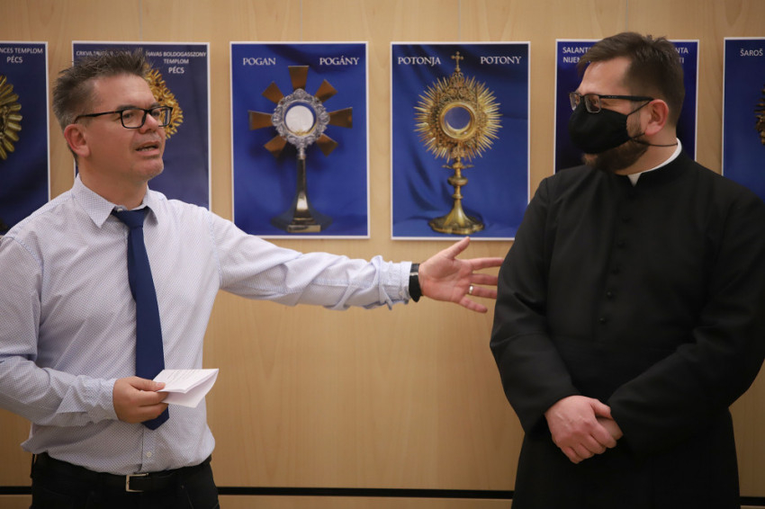 Az 52. Nemzetközi Eucharisztikus Kongresszus tiszteletére készült kiállítás megnyitóján az alkotó megköszönte Darnai Ágoston atya szolgálatkész, támogató hozzáállását.