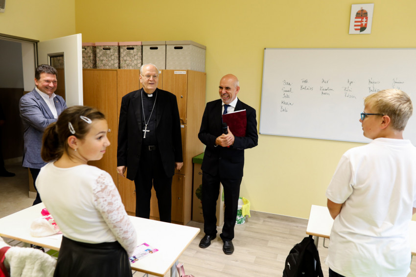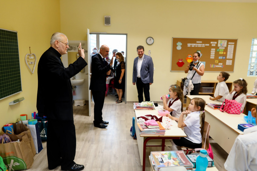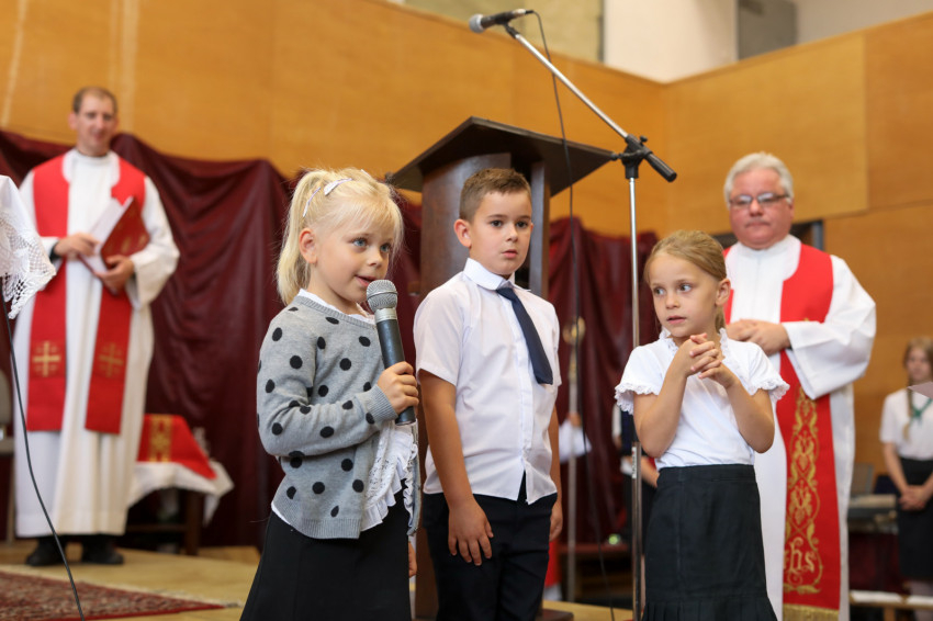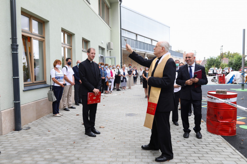 „Öröm és hála van a szívünkben. Öröm, hogy együtt ünnepelhetünk, és hála, hogy iskolánk bővült, szépült” – köszöntötte Pokriva László, a Szent Anna-templom plébánosa az ünneplő közösséget.