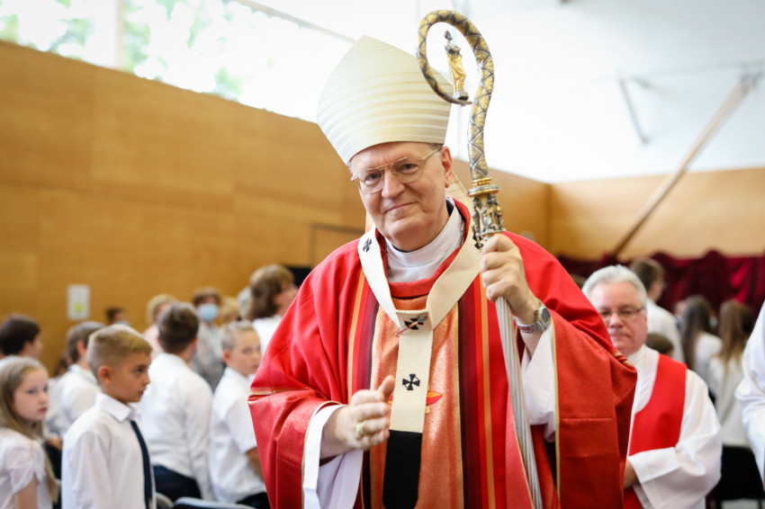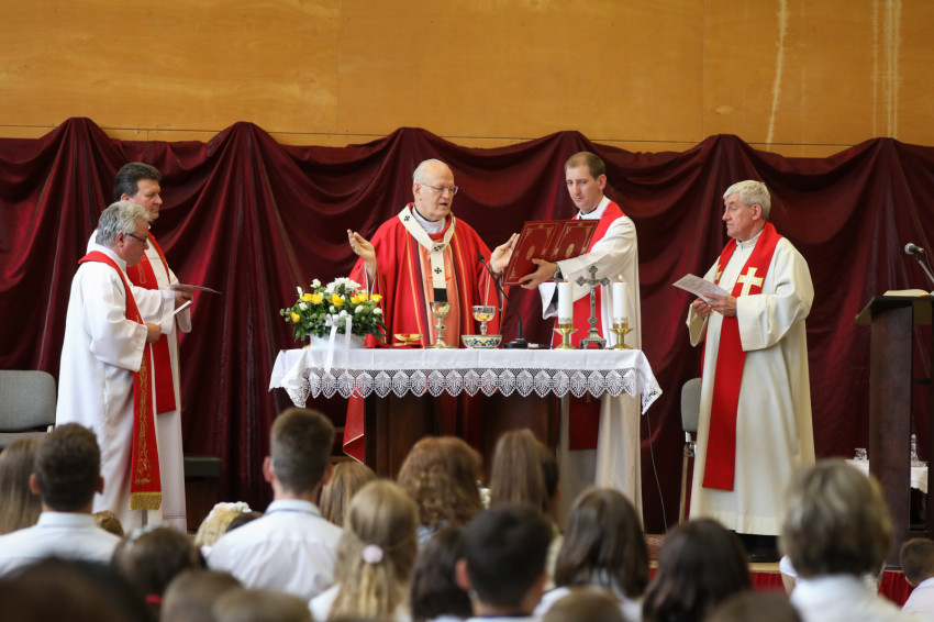 Homíliájában a főpásztor a Szentlélekről tanított. Megerősítette, mennyire nagy szükségünk van a Lélek világosságára, erejére és örömére – az idén különösen. Az iskola egész közösségének megsegítésére kérte a Szentlelket: A tanárok számára útmutató támogatást kért, hogy megtalálják, miként tudnak hatékonyan tanítani, távolságot tartva óvni egymás egészségét és egyben közösséget építeni. A szülők számára erőt kért, hogy munkájuk mellett időt tudjanak szentelni a családnak, a tanulók számára megértést, hogy közelebb tudjanak kerülni az élet és a szeretet örök igazságaihoz. Mindannyiunk számára pedig azt, hogy a korlátozások ellenére ki tudjuk fejezni segítő szeretetünket, és meg tudjuk élni egyházi közösségünk egységét, mert ez az összetartozásunk a bizalom és szeretet erőforrása mindannyiunk számára.