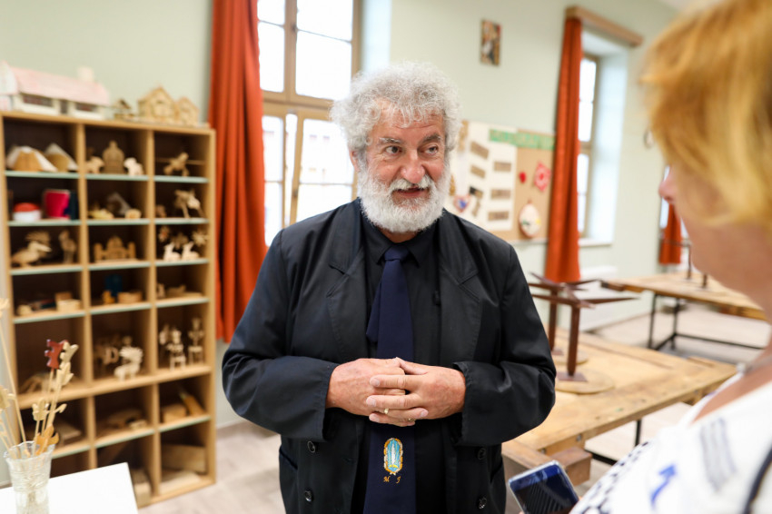Az ünneplő vendégek az udvaron gyülekeztek. Erdő Péter bíboros megáldotta az új épületszárnyat. Az igazgató és több tanár vezetésével megismerhettük az újonnan kialakított termeket. Minket egy idősebb tanár, Reiser Imre vezetett, aki csaknem az indulás óta az iskolában dolgozik. Megmutatta a modern számítógéptermet, a munkapadokkal felszerelt technikatermet – saját birodalmát –, a könyvtárat, az ebédlőt, az osztálytermeket.