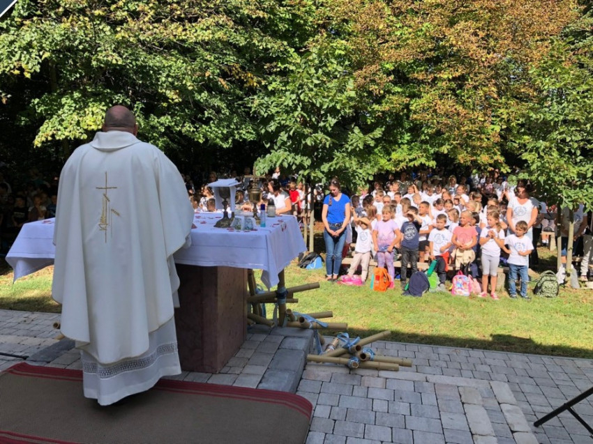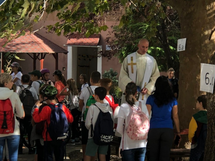 A rekollekciós nap kezdetén a bűnbánati liturgiához kapcsolódóan tanév eleji gyónásukat is elvégezhették a tanulók, majd az udvari közös imádságot követően biciklikkel indultak a szomszéd település zarándokhelyére.