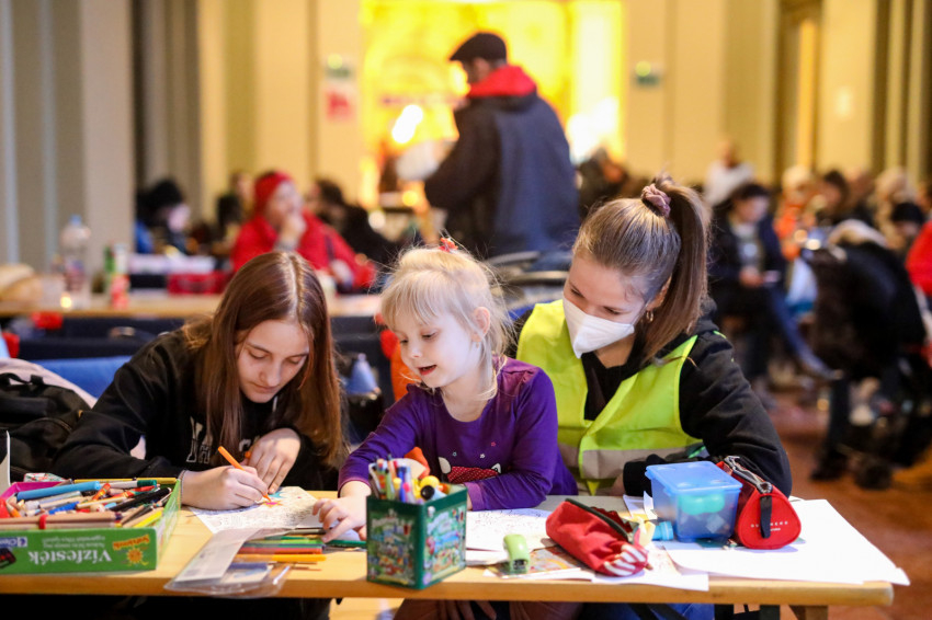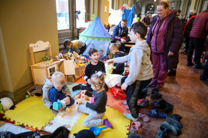 Az adományozók ide is folyamatosan érkeznek. Egy háromgyermekes anyuka, Annamária már többször járt itt, és játékokat hozott a gyermekeknek. Most a legkisebb fiával érkezett. Ha valakinek menekülnie kell, az emberek érthető módon először nem a játékokat pakolják be. Amikor adományokat hozott a férjével, látta, hogy a kismamák ülnek, mellettük a gyermekeik, nem tudnak mit kezdeni magukkal. Ezért határozta el, hogy játékokat hoz nekik, így tegnap kisautókat – és öröm volt látni, hogy azonnal felpattantak, és játszani kezdtek. Ma már rengeteg játék van a kicsik kezében, autó, matchbox, repülő.
