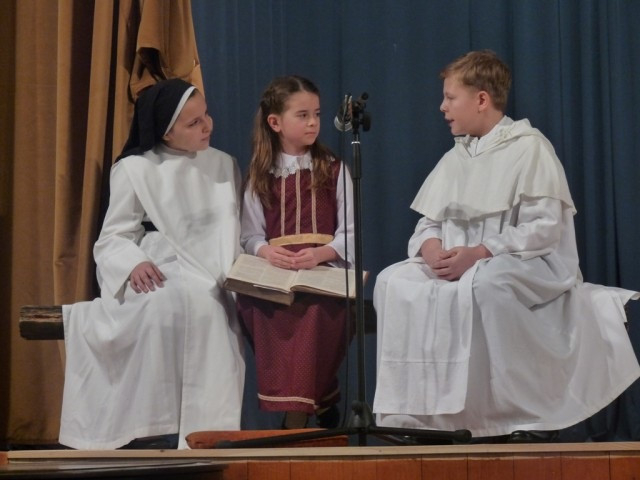 Pénteken, január 16-án Árpád-házi Szent Margit, az iskola védőszentje ünnepét ülte meg az iskola. A hatodik osztályosok – hűen hagyományaikhoz – Szent Margit életét bemutató színdarabbal készültek. Az idei jelenetsor arra világított rá, hogyan mutatkozott meg Szent Margit mindennapjaiban az imádkozó, a gyógyító és a békét teremtő Jézus lelkülete.