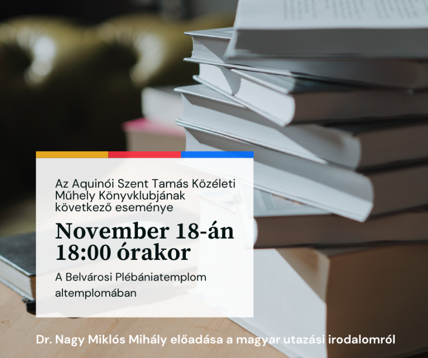 A Műhely Könyvklub eseményén a részvétel ingyenes. Helyszín: budapest-belvárosi Nagyboldogasszony-főplébánia-templom altemploma (Budapest V., Március 15. tér).