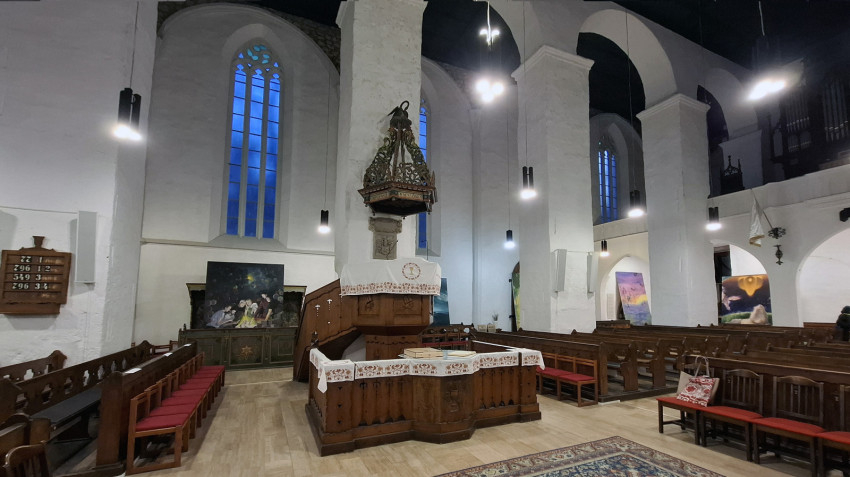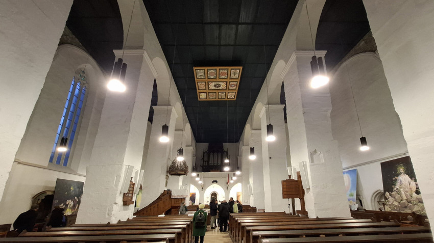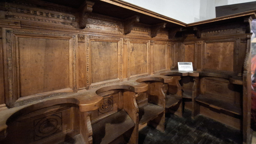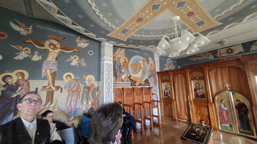 Később a püspöki székházban, az ott elköltött ebéd után, megnézhettük a kápolnát, amelyet Seres Tamás festőművész, restaurátor és csapata festett ki.