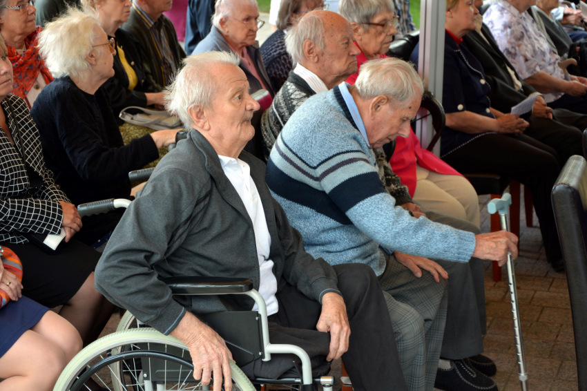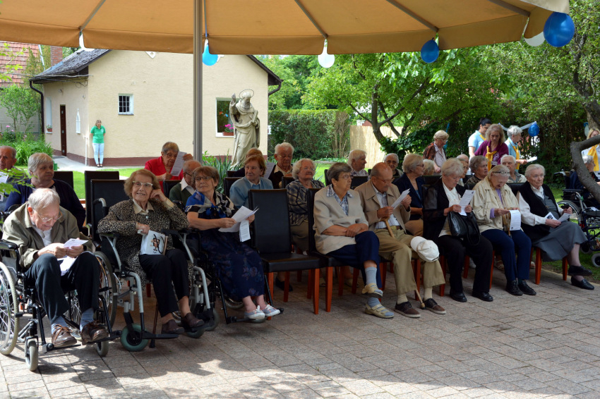 A szentmise előtt már gyülekeztek az otthon lakói. Akiket kerekesszékben toltak gondozóik, egyértelműen a házhoz tartoztak. De sok demenciával élőn semmi furcsa külső „jel” nem volt látható. Szakember bizonyára meg tudja állapítani a betegséget – számomra csak az volt a „jel”, hogy időről időre egy-egy ápoló odament valakihez, s elvezette a mosdóba, vagy átültette egy másik székbe, esetleg néhány kedves szóval a helyén marasztalta. Egy hölgy a szentmise egész szövegét, a pap szövegeit is, halkan magában mondta. Elgondolkodtam, hogy bármelyikünk vagy bármelyikünk rokona, szülője, házastársa, testvére, sőt gyereke is demenssé válhat, Alzheimer-kóros lehet... Elvész a múlt, nyomába eredni nagyon nehéz. Már a szentmise előtt megállapítottam azt is, hogy a betegek, a lakók és ápolóik jóval mosolygósabbak, egymáshoz sokkal kedvesebbek, barátságosabbak az „országos átlagnál”…
