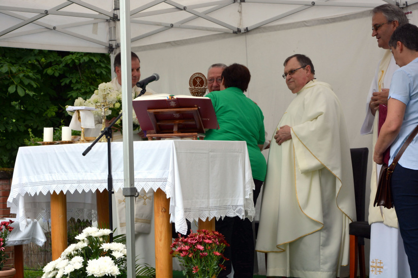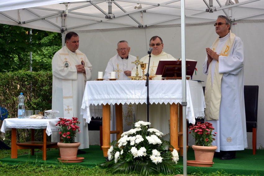 Miután Balog Józsefné intézményvezető köszöntötte a megjelenteket, Esterházy László máriaremetei plébános főcelebrálásával megkezdődött a szentmise. Esterházy atya külön köszöntötte a vele koncelebráló Herpy Györgyöt, akit 65 esztendővel ezelőtt szenteltek pappá. A vasmisés atya jelenleg a ház lakója, az ott élők lelki támasza, aki az eucharisztikus Jézust hozza közéjük.