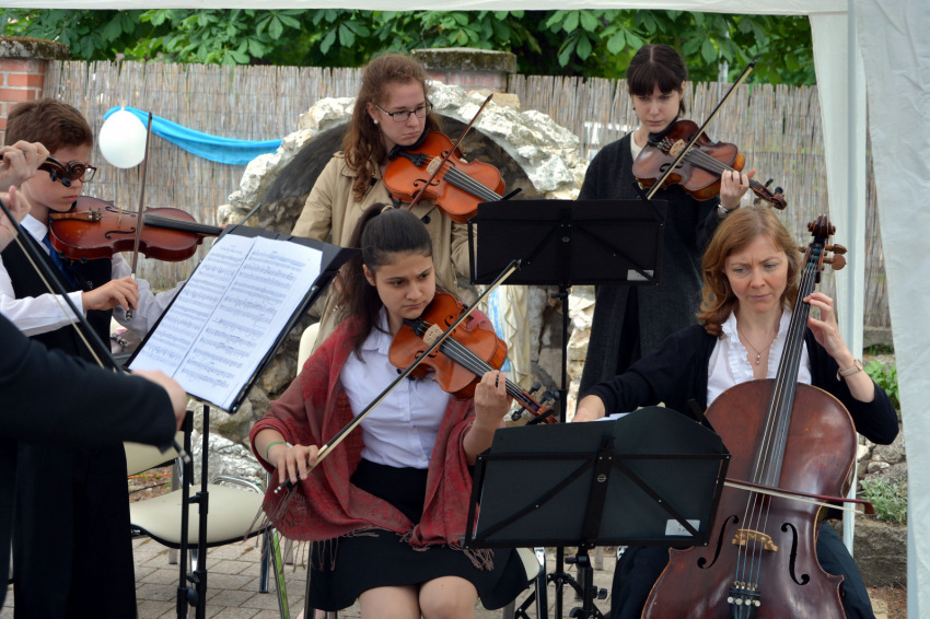 A kert ünnepélyes átadása után a ház munkatársainak és lakóinak ünnepi műsora következett, majd a Patrona Hungariae Katolikus Iskolaközpont Alapfokú Művészeti Iskolájának vonószenekara adott koncertet.