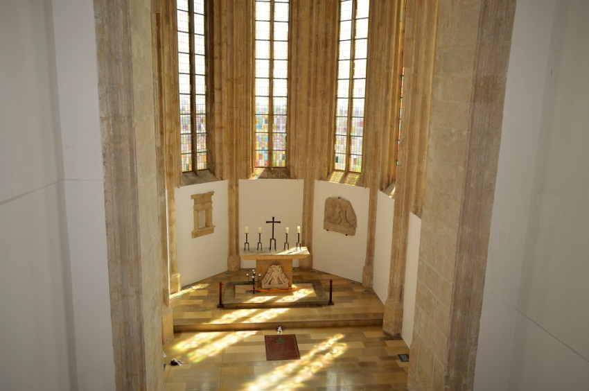 A déli és a keleti szárny találkozásánál áll a gótikus és reneszánsz jegyeket őrző egyhajós várkápolna, amely nemcsak gróf Batthyány Kázmér, a második független magyar kormány külügyminisztere hamvait rejti. Itt nyugszik a vár utolsó ura, gróf Benyovszky Móric főispán is. Az írások szerint a 15–16. század fordulóján építették e visszafogottságában is elegáns kápolnát, ahol az istenkereső ember találkozik az emberkereső Istennel. Letelepszünk a padokra, hogy megpihenjük és ráncba szedjük a gondolatainkat. A színes üvegablakok fény-árnyék-játékába feledkezem, s közben arra gondolok, az elmúlt századok során milyen lelki gyógyulások tanúi lehettek e falak. Kiről, s mikor hullott le az álarc, és hány fohász szállt az égbe a hűségért, a visszakapott egészségért, az elnyert békéért, a jövőért, a megmaradásért. Mint megtudtuk: e felszentelt kápolnában olykor egy-egy esküvőt is tartanak, de különböző művészeti eseményeknek is kedvelt helyszíne. Az egykori sekrestye kiállítóhely; egyházi kincsek láthatók itt szobrokkal, kelyhekkel, és egy kamarakiállítás is vár bennünket a függönyíves ablakokkal tagolt, hálóboltozatos szentélyben végződő várkápolna történetéről.