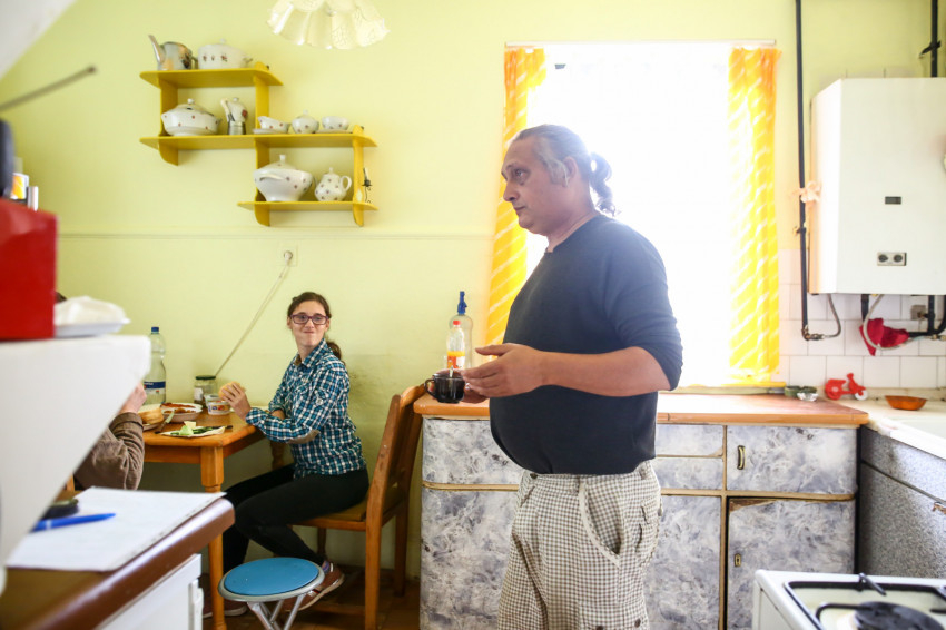 Bőségtállal fogad bennünket: Pém Mihályné Gabriellát, a helyi, mélyszegénységben élő cigányok patrónusát; Nikit, egy közepesen fogyatékos, huszonegy éves lányt, aki már a megjelenésével is derűt sugároz, jókedvet; és fotós kollégámat, Lambert Attilát. Friss kenyér, zsömle, szalonna, kolbász, sonka, szalámi, uborka, vöröshagyma, ásványvíz, kávé. Azt mondja, éhesen nem jó dolgozni, nem fog az agy. Azonnal megteremtődik köztünk a legfontosabb, lelki-szellemi kapcsolat, először látjuk, de mintha időtlen idők óta ismernénk egymást.