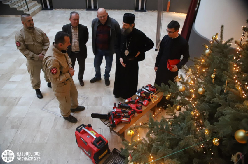 Az aggregátort, fúrógépet, ütvecsavarozót és fűrészeket Kocsis Fülöp hajdúdorogi érsek-metropolita is megáldotta.