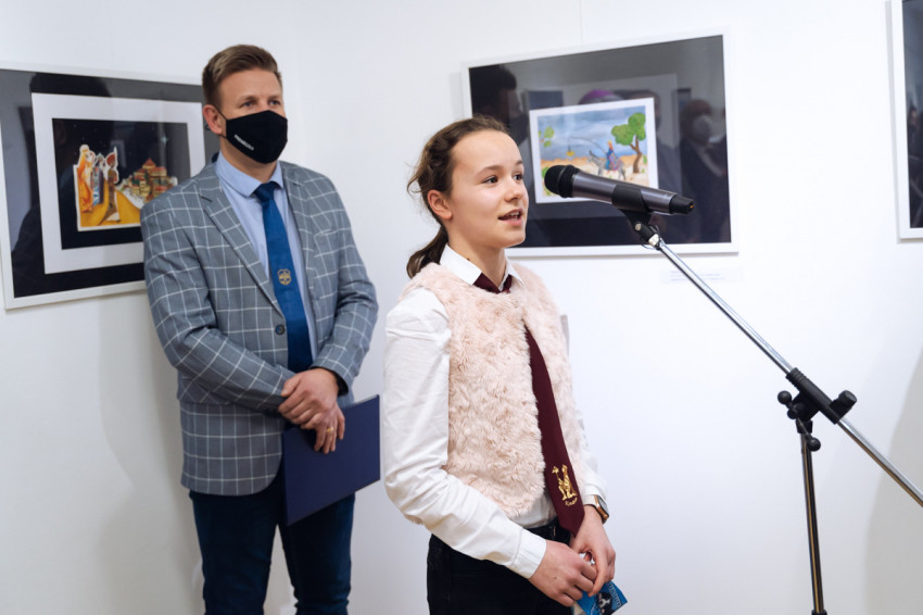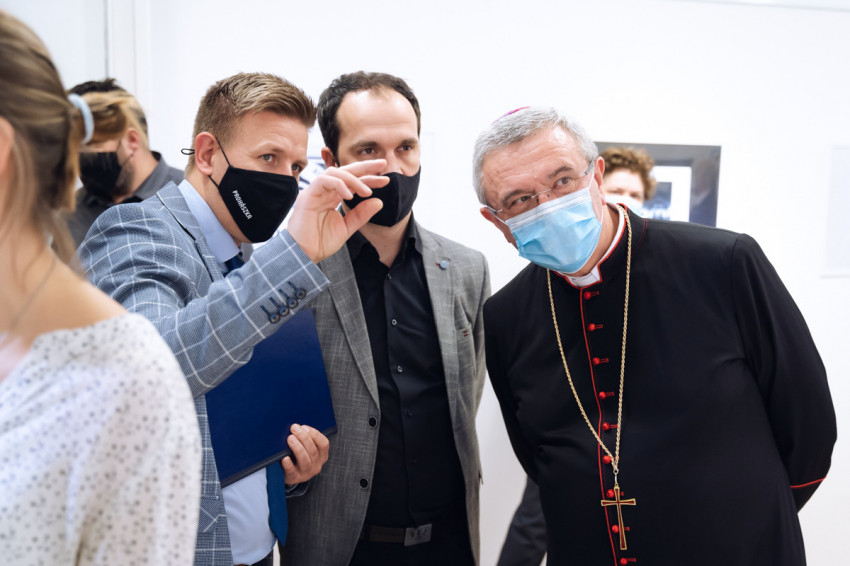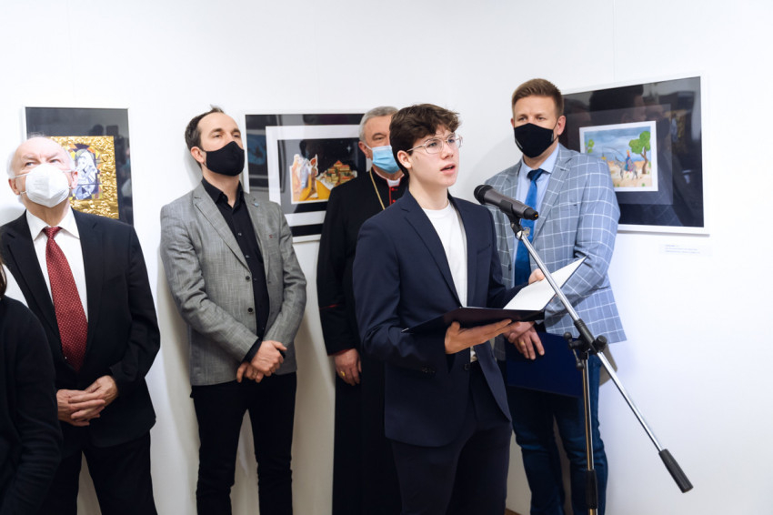 Az esemény délután a Triangulum Galériában folytatódott, ahol Veres András megyéspüspök ünnepélyes keretek között megnyitotta a pályaművekből válogatott, Valaki kölcsönbe vette kezedet című tárlatot, majd köszöntője után átadta a legkiválóbb pályázóknak a díjakat.
