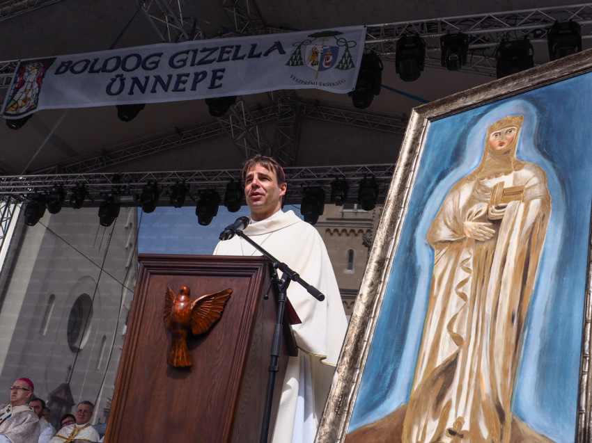 „Mindegy, hogy éppen Magyarország királynéja volt, vagy éppen férje halála után szegényen és nyomorultan a börtön mélyén sínylődött, vagy éppen Passauban élt szerzetesnővérként. Megtalálta az elrejtett kincset – s odaadta érte az életét. Gizella életében példaszerűen látható, mi lehet az a valódi erő, amely Európát mélyen átformálta, s mind a mai napig összetartja: a Krisztusba vetett hit. Emlékezzünk erre újból és újból a növekvő megosztottságtól és elkülönüléstől fémjelzett időkben is, éppen itt, Európában! Boldog Gizella, könyörögj érettünk!” – zárta szentbeszédét a püspök.