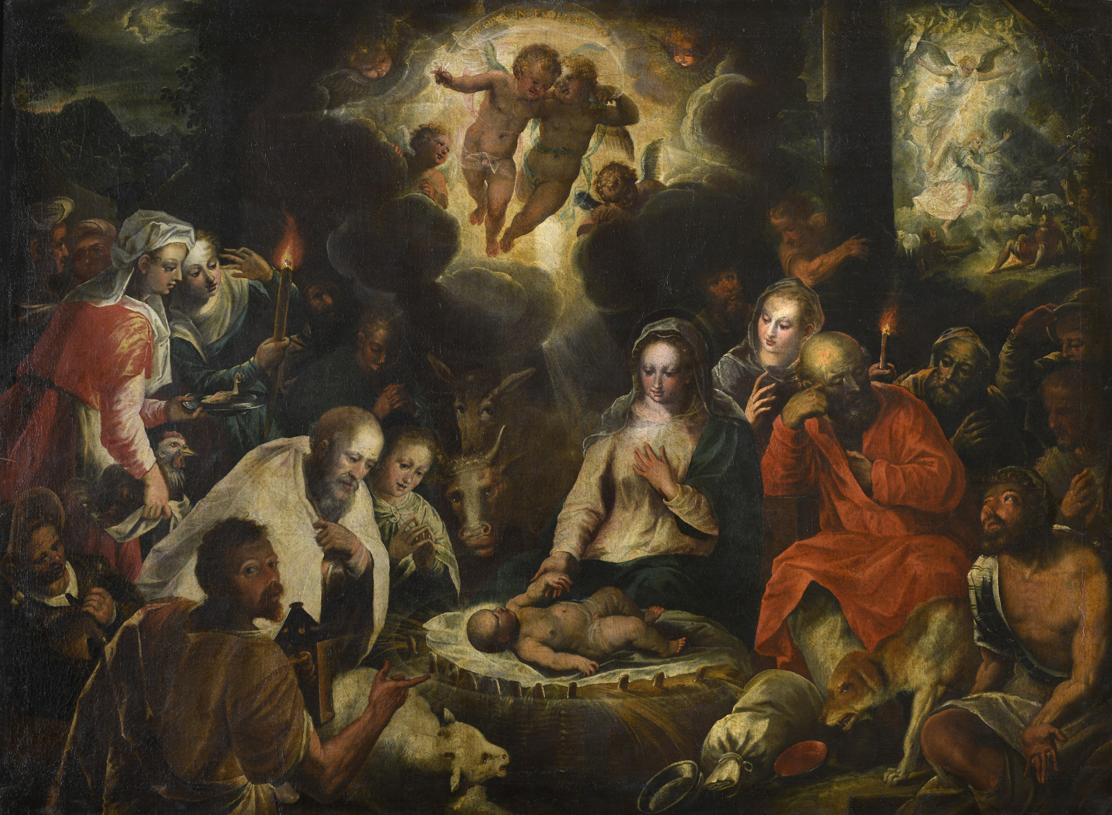 Kép: Pásztorok imádása, Johann Rottenhammer (?) műve, készült 1600 körül. Vászon, olaj, 110 x 154 cm, Keresztény Múzeum, Esztergom. Ltsz.: 59.954