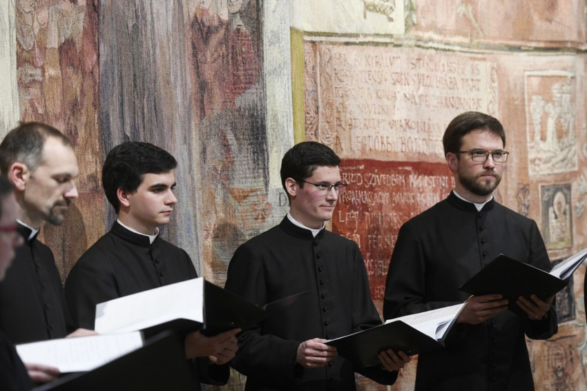 Az elmélkedést követően a papnövendékek énekegyüttese a nagyböjti időszakhoz kapcsolódó egyházzenei darabokat adott elő. Karvezetőjük a Hittudományi Főiskola musica sacra tanára, Pálmai Árpád volt, aki maga is előadóművész.
