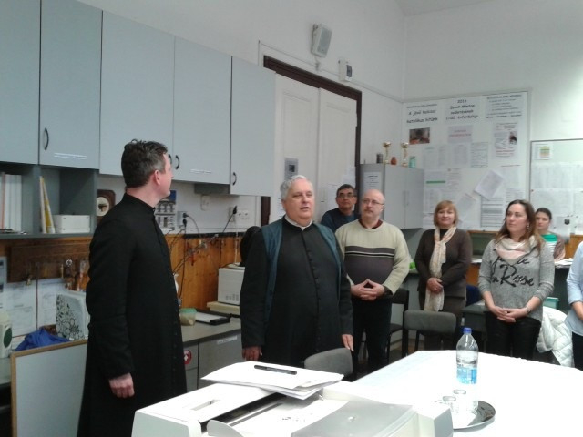 Csütörtökön délután Angelico atya a Szent László Katolikus Általános Iskola nevelőinek, munkatársainak tavaszi nevelési értekezletén a tanítás, segítés fontosságáról beszélt. Arról, milyen sokra tartja az egyház a tanító szolgálatot. Szólt a börtöntanárok helyzetéről, és saját életének példáival támasztotta alá mondanivalóját. Don Bosco és Néri Szent Fülöp alakjára utalva kiemelte, hogy az irgalmasság cselekedete a tanítás. A szülők, nevelők a jóra tanítják a gyermekeiket, tanítványaikat, ahogy az a mesékben is lenni szokott. A jó mindig elnyeri jutalmát, a gonosz a büntetését. „És mi a helyzet a Földön? Ott is ez érvényesül?” Többnyire nem. De az emberi élet csak akkor élet igazán, ha irgalmasak vagyunk, ha gyakoroljuk a testi és lelki cselekedeteket. Szabad és kell a gyermekeket a jóra tanítani! Ám ahhoz, hogy ezt meg tudjuk tenni, mi magunknak is szükségünk van irgalomra. Találkoznunk kell az irgalom forrásával. A legnagyobb forrás az irgalom anyja, Szűz Mária. Legnagyobb tette az volt, hogy nekünk adta gyermekét, az irgalmat, a keresztre feszített Jézust.