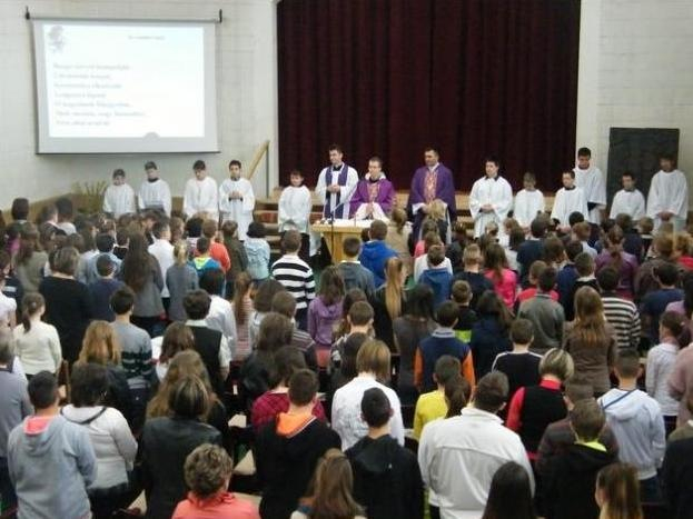 A passió a gyerekek előadásában, benne a közös keresztútjárás a lelkinap legszebb része minden évben. A nap hátralévő részében Jeromos atya a felsős tanulókkal beszélgetett. Ebéd után az iskola dolgozói a bencés lelkiségről, Szent Benedek Regulájáról hallhattak érdekes beszámolót.