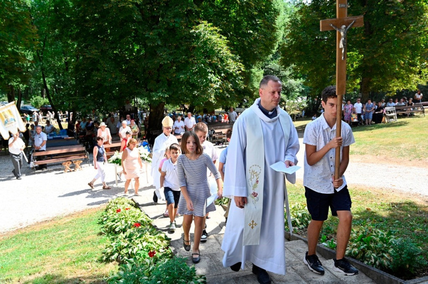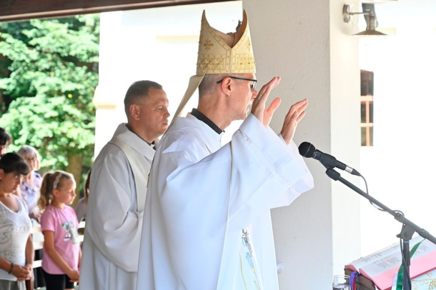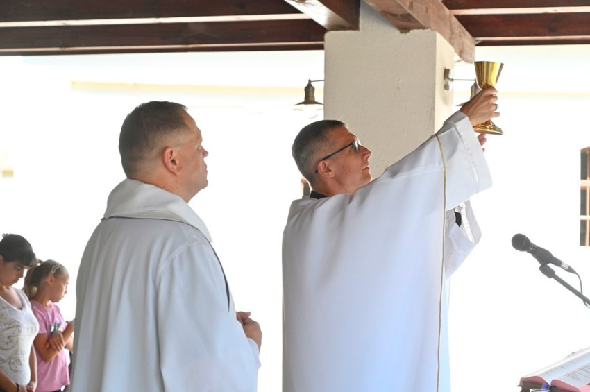 Nagyboldogasszony búcsús ünnepére számos hívő gyűlt össze a pusztacsatári kegykápolnánál felállított szabadtéri oltár körül. A szentmise kezdetén Mikolás Attila plébános köszöntötte Martos Levente Balázs püspököt és a híveket, valamint örömét fejezte ki, hogy a nagy hőségben is ennyien összegyűltek köszönteni a mennybe felvett Szűzanyát.