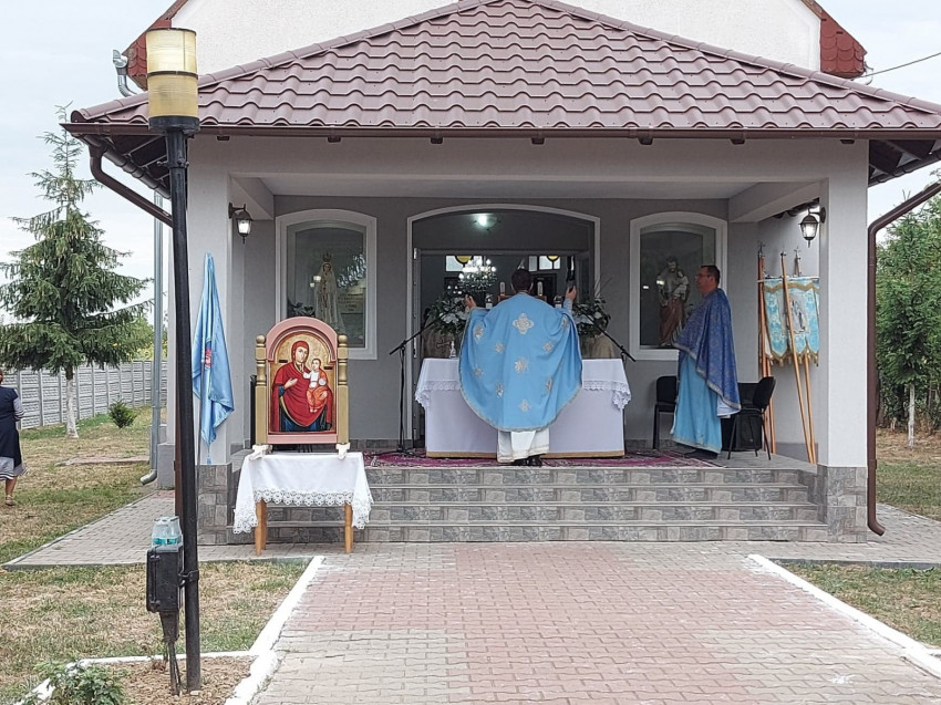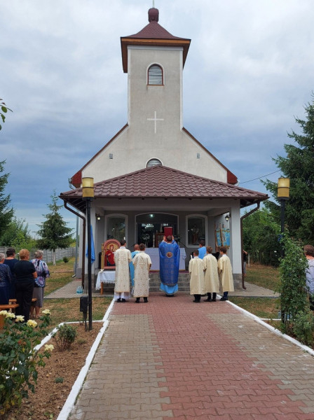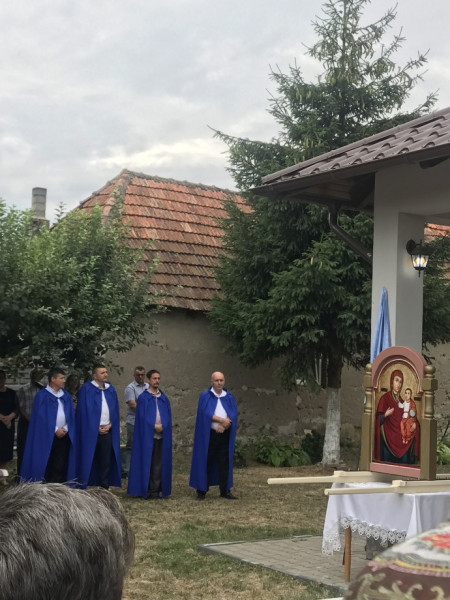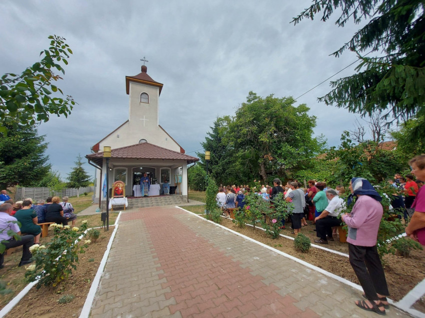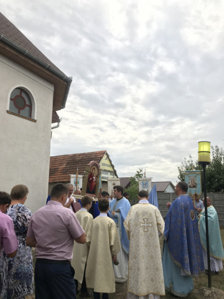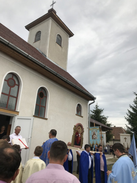 – ezzel az énekkel vonultak végig a főútról a kápolna felé vezető kisutcán, vállukon az ikonnal a Nagypeleskéről, Kissárról, Lázáriból és az Atyából érkezett hívek.